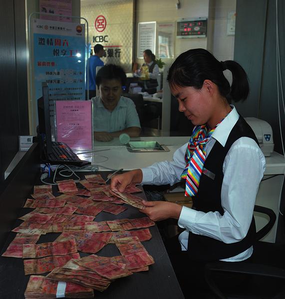 近日,工行山东省聊城市龙山支行员工,耐心细致地为客户清点、兑换烧损残币,让客户感激不已。井业龙摄影报道