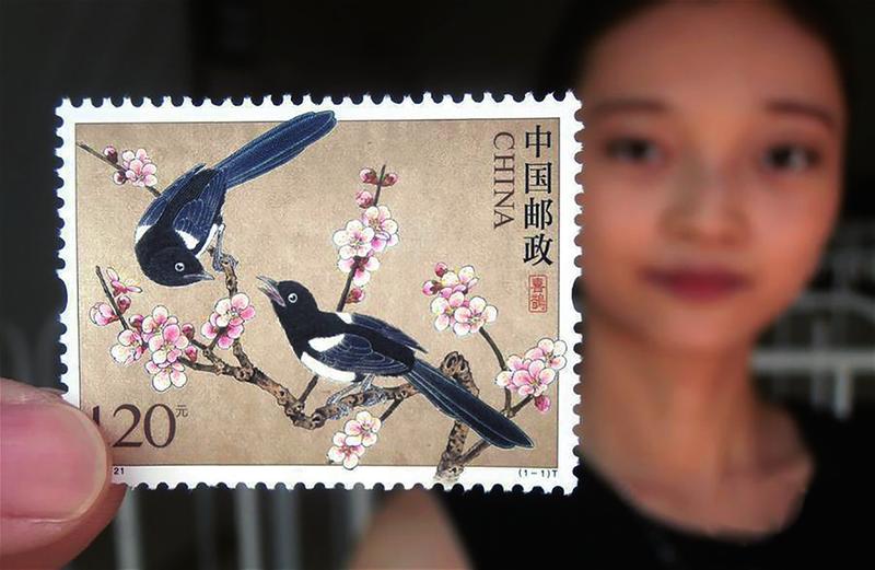 8月28日,一名集邮爱好者在江苏苏州邮政局展示《喜鹊》特种邮票。当日是传统节日七夕,中国邮政发行《喜鹊》特种邮票一套1枚,邮票面值为1.2元。新华社供图