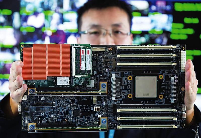 12月6日,在北京智能计算产业研究院举行的发布会上,工作人员在现场展示高通量人工智能一体机的核心部件。当日,由中国科学院计算所孵化的智能计算领域创业公司中科睿芯与高通公司联合发布的全球首款基于ARM架构的高通量人工智能一体机首次亮相北京。这是一款软硬件一体、开机即用的人工智能一体机,可省去用户搭建服务器环境、搭建人工智能平台等诸多复杂步骤,将人工智能应用在高效的“高通量计算”模式上,让用户能够快速使用人工智能技术。新华社供图