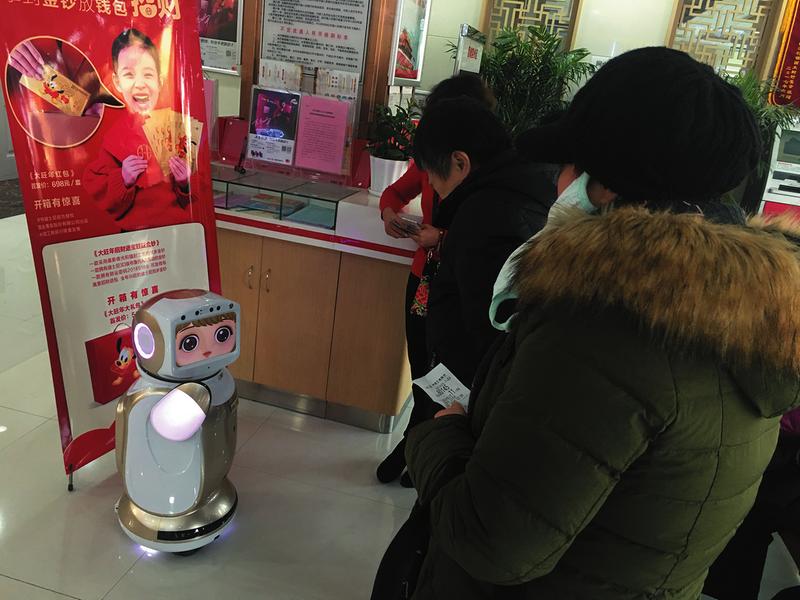 工行河北省邢台市守敬支行近期引入“新员工”机器人“守敬工小宝”,利用智能机器人开创网点智能化管理。“守敬工小宝”辅助大堂经理开展客户接待、业务咨询、营销宣传、互动交流等工作。在解答客户业务问题之余,“小宝”还对生活百态和柴米油盐略有心得,经常逗得客户喜笑颜开,不仅缓解了客户等候办理业务时的焦躁情绪,还不失时机地推介了产品、挖掘潜在客户,与大堂经理、客户经理配合促成销售,开创了网点营销新模式。孔晓青摄影报道