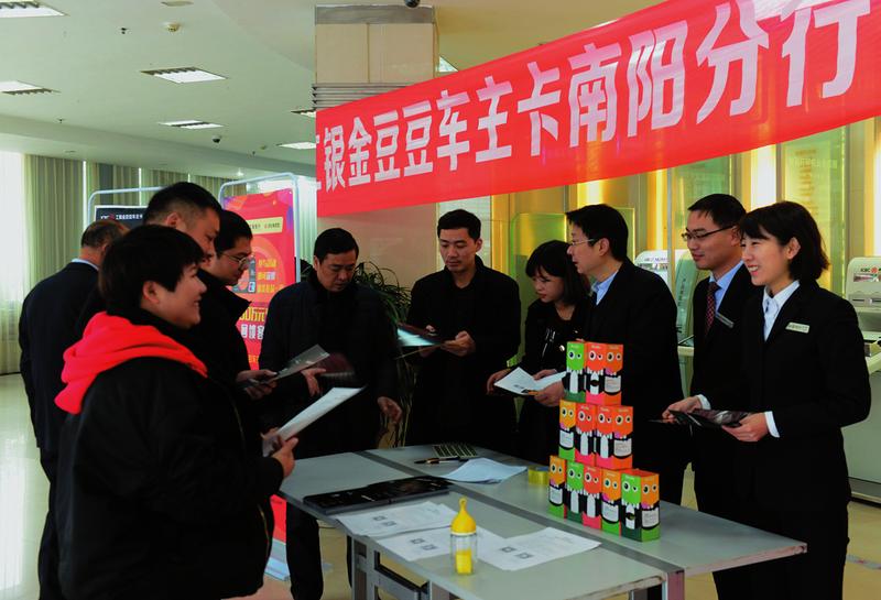 近日,工行河南省南阳分行开展工银金豆豆车主卡赠送交强险回馈客户活动,客户现场办理金豆豆车主卡,并下载APP,该行赠送车险和中石油加油优惠电子券。活动现场气氛热烈,收效显著。蒋红升摄影报道