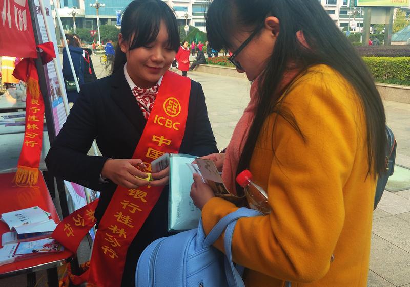 工行广西区桂林分行团委近日组织青年员工代表,参加桂林市志愿者服务日活动,为广大公众提供惠民产品宣传、用卡安全、假币识别等金融志愿服务,展示了工行形象,赢得了公众欢迎。桂航摄影报道