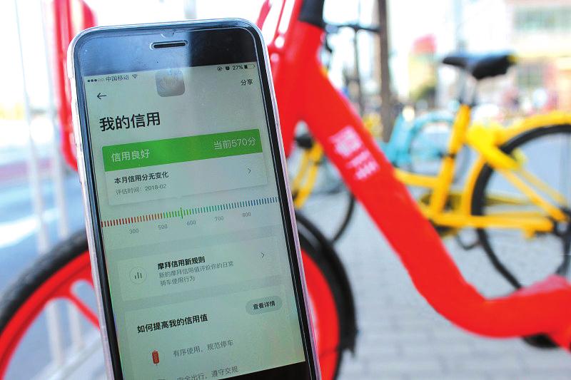 为遏制乱停乱放、私自上锁等不文明行为,近日,摩拜单车上线了新的信用系统,将用户的信用值分为五个等级,信用值越高,代表用户的行为越规范,将来也会得到更多的权益,反之,则将被收取更高的使用费用。CFP供图