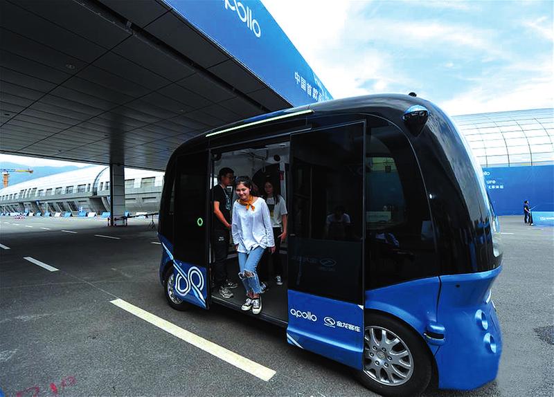 日前,中国首款商用级无人驾驶巴士“阿波龙”向公众开放试乘体验。据悉“阿波龙”计划在2018年7月份开始量产,届时将正式开启无人驾驶巴士的商用新征程,未来,该无人驾驶巴士将会在景区、机场等地应用。CFP供图