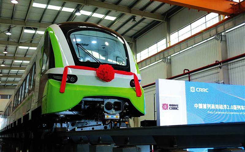 6月13日,拥有完全自主知识产权的中国首列2.0版商用磁浮列车在中车株洲电力机车有限公司下线,意味着中国磁浮列车技术取得新突破。据了解,该列车时速达到160公里,适用于中心城市到卫星城之间的交通。新华社供图