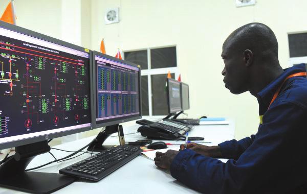 2017年11月2日,由中企承建的科特迪瓦最大水电站苏布雷水电站举行竣工典礼。图为科特迪瓦苏布雷水电站,一名当地员工在监测发电数据.