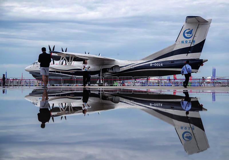 “2018荆门爱飞客飞行大会”日前在湖北荆门漳河机场举行,此次大会展出的机型涵盖固定翼飞机、直升机、公务机、波音737客机、水上飞机、滑翔翼等各类飞行器近150架,大型水上飞机AG600亮相飞行器静态展示环节成为全场亮点。中新社供图
