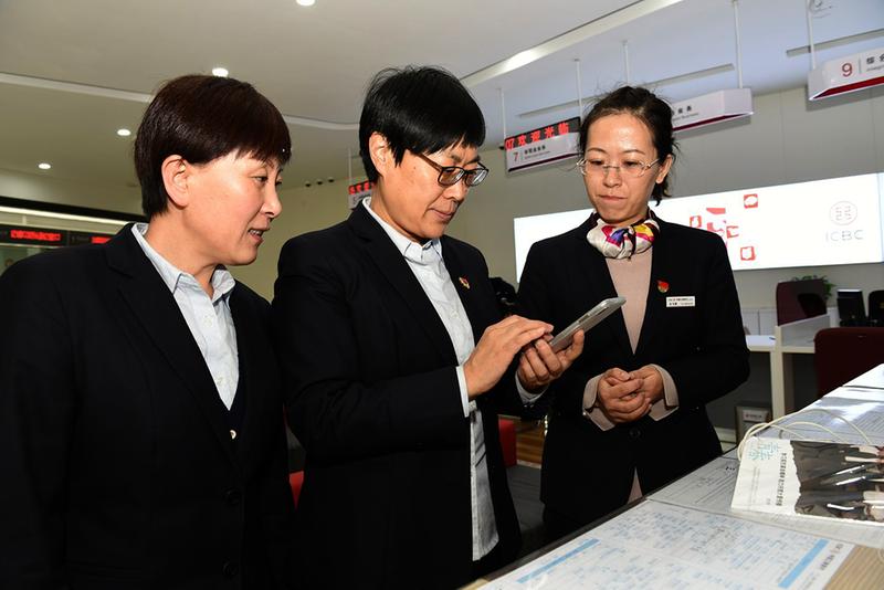12月4日,工行河北省承德分行行长赵洪瑕(中)到太平桥支行看望一线员工,了解个人客户经理系统操作及每日工作,询问旺季营销工作进展、支行公众号使用及e生活客户推广情况,并指导网点环境优化布置等工作。太平桥支行员工深受鼓舞,纷纷表示要全力打好岁末年初旺季攻坚战。迟立伟 摄影报道