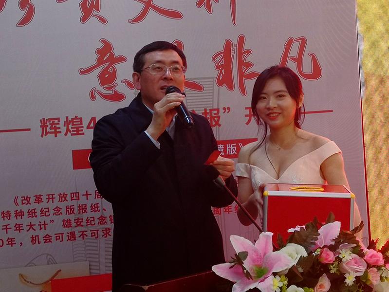近日,工行山东省临沂分行为纪念改革开放40周年,举办了《改革开放四十周年金银纪念版》品鉴会,众多改革开放纪念产品震撼亮相。该行副行长陈维东、个人金融业务部总经理刘春青、办公室副主任兼团委书记梁克水,和所属支行的理财经理、结现经理及优质客户,参加了本次活动,当天现场交易100万余元。图为该行副行长陈维东(左)抽取并宣布幸运客户奖。梁克水司鑫摄影报道
