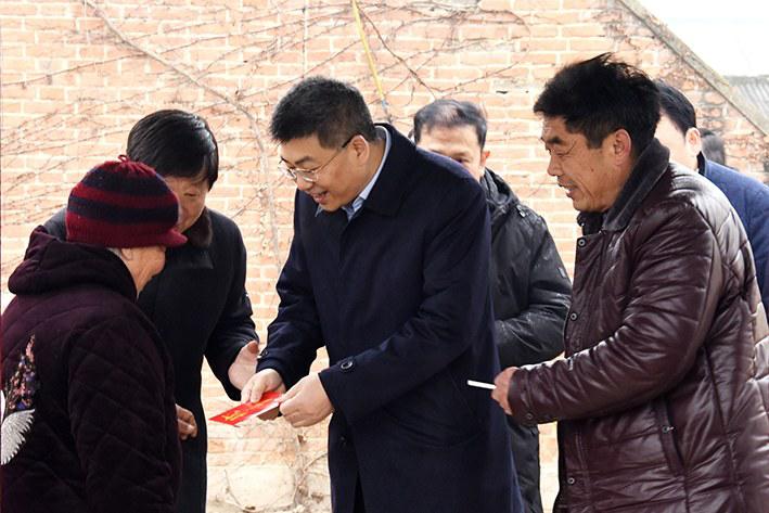 1月30日,工行河南省南阳分行党委书记、行长杨新宏(左三)一行,到扶贫工作点南阳市宛城区高庙乡郭厂村慰问贫困户和驻村干部。近三年,该行累计投入扶贫款物共计30多万元,使郭厂村村容村貌大改观,村民逐步走上致富路,基本建成了家富、人和、村美的社会主义新农村。