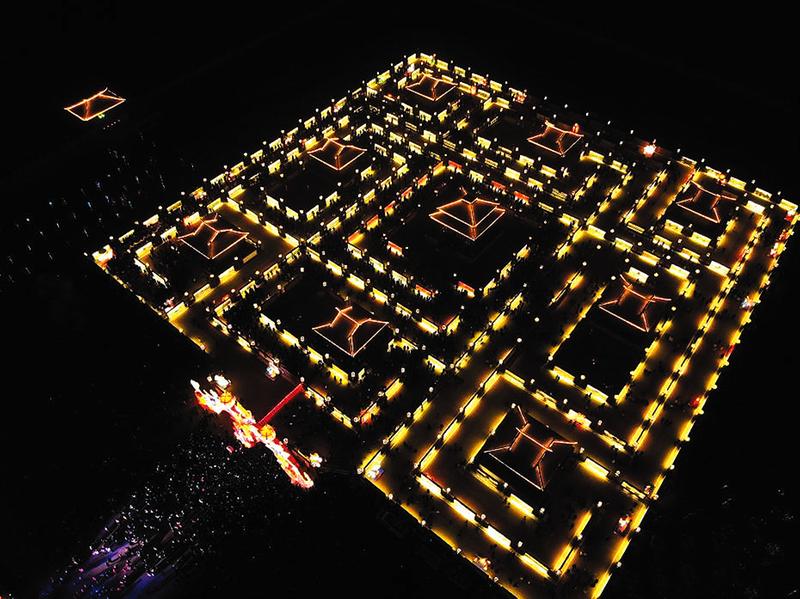 上万民众穿越“九曲黄河灯阵”祈福