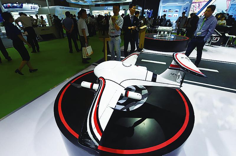 7月3日,为期三天的2019中国国际运输与物流博览会在杭州开幕,本届博览会以“科技改变物流”为主题,展现了现代物流在信息化、人工智能、大数据、无人机等智慧物流方面的应用与趋势。图为参观者在观看国产大型载重无人机。CFP供图