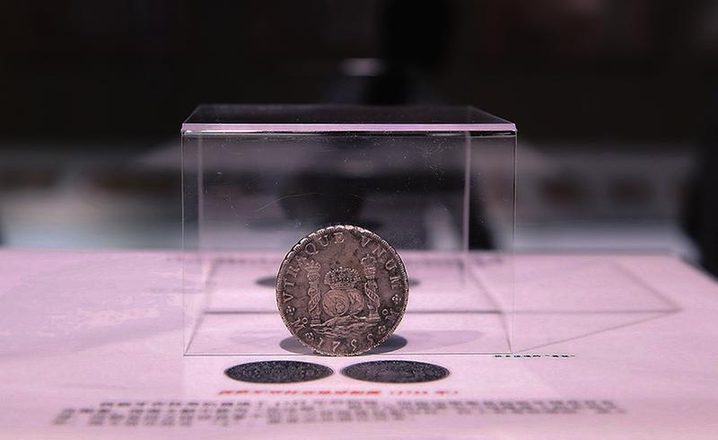 8月15日,“家国情怀记忆遗产——侨批与金融历史文化展”在福州举行,展出相关实物近500件。侨批即海外华侨银信,是华侨华人通过民间渠道以及后来的金融邮政机构寄回国内的家书或简单附言及汇款的凭证。图为被称为“花边银”的1755年的西班牙双柱双地球银元。人民网供图