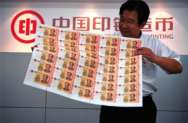 8月30日起,2019年版第五套人民币正式发行。此次发行包括50元、20元、10元、元纸币和1元、角、角的硬币。与2005版相比,2019年版人民币防伪技术大幅提升,在此次发行的4种纸币上,均采用了光彩光变面额数字作为其中一种防伪特征。图为中国印钞造币总公司技术总监刘永江正在介绍2019年版第五套人民币20元纸币的防伪特征。新华社供图