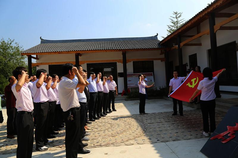 日前,农行湖北省荆门市钟祥支行组织党员干部,深入到钏祥客店镇朝阳店村扶贫联系村,开展走访贫困户和向包联贫困户“送清凉”活动,并在该村党员群众活动中心,与镇、村干部一起共同开展“不忘初心牢记使命”主题党日活动,重温入党誓词,谋划脱贫路径,坚定打赢脱贫攻坚战的信心。图为主题党日活动场景。姚世清 摄影报道