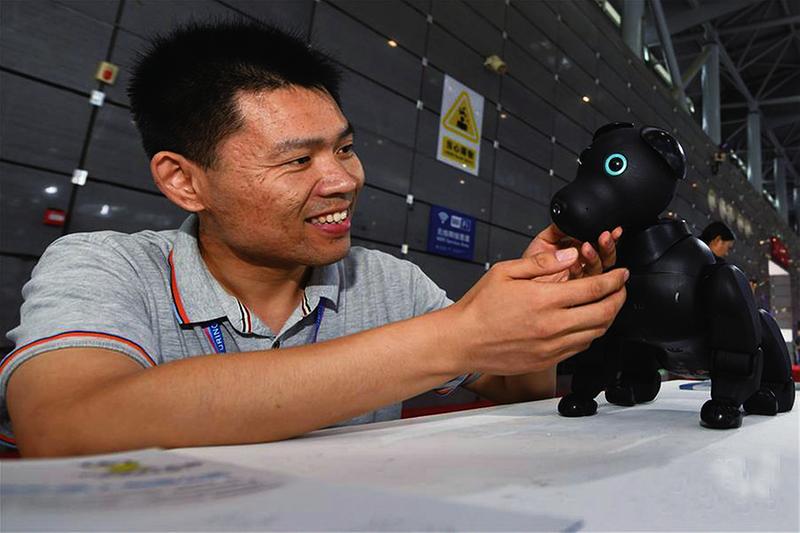 9月20日,2019世界制造业大会在安徽合肥开幕。此次大会总布展面积6.1万平方米,各种难得一见的高精尖制造产品揭开神秘面纱,通过炫酷有趣的多媒体互动和“沉浸”式体验,让观众感受创新创造的无穷魅力。图为一款面向家庭场景的仿生机器狗。新华社供图