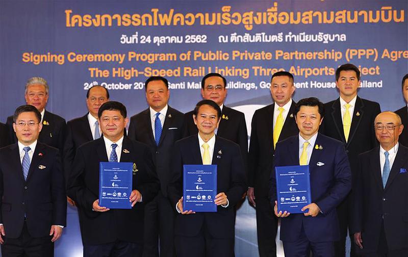 10月24日,泰国东部经济走廊连接曼谷廊曼机场、素万那普机场和罗勇府乌塔堡机场的高铁项目举行协议签约仪式。本项目是中国企业首个海外高铁投资类项目,将有力推动中国高铁“走出去”步伐,提升中国企业在泰国乃至东南亚交通基础设施领域的影响力。新华社供图