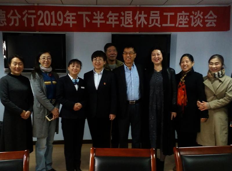为切实加强到龄退休员工的管理,近日,工商银行河北省承德分行组织召开了2019年下半年到龄退休员工集体座谈会。座谈会上,大家相互交流,纷纷回想在职时的点点滴滴,表达了对心爱的岗位、融恰的同事的眷恋之情,并感谢分行党委重视、关心离退休员工和为其提供的以老年大学为主阵地的学习、活动平台等。还分别解读了相关退休福利、医保政策,通报了退休服务相关内容、管理规定等。张守国 摄影报道