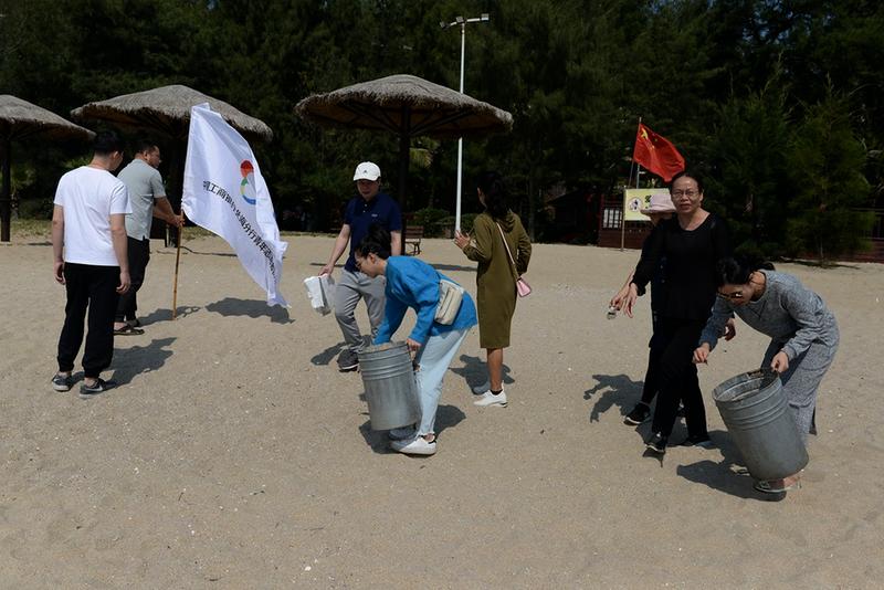 工商银行广西区北海分行近日组织青年志愿者响应北海市政府建设卫生文明城市活动,到海滩清理沙滩上的果皮、包装纸等垃圾,为北海市创建文明城市助力。翟晓晖 摄影报道