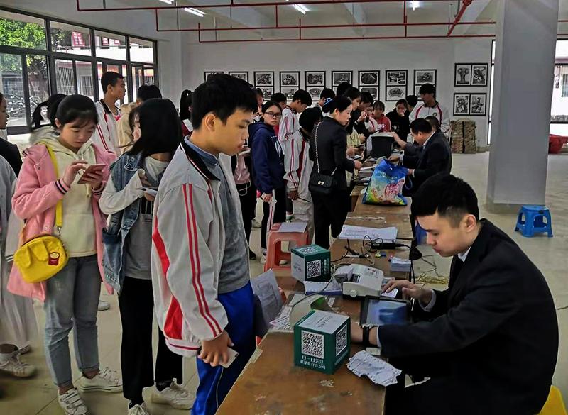 农行广东省遂溪县支行认真推动校园服务工作,近日组织服务工作小组深入遂溪一中、大成中学等学校,为广大职工、师生开立学生资助银行卡,办理掌上银行手机等业务,送业务入校园,深受广大师生欢迎。梁益 摄影报道
