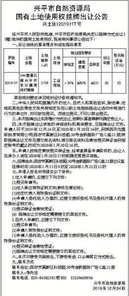 兴平市自然资源局国有土地使用权挂牌出让公告