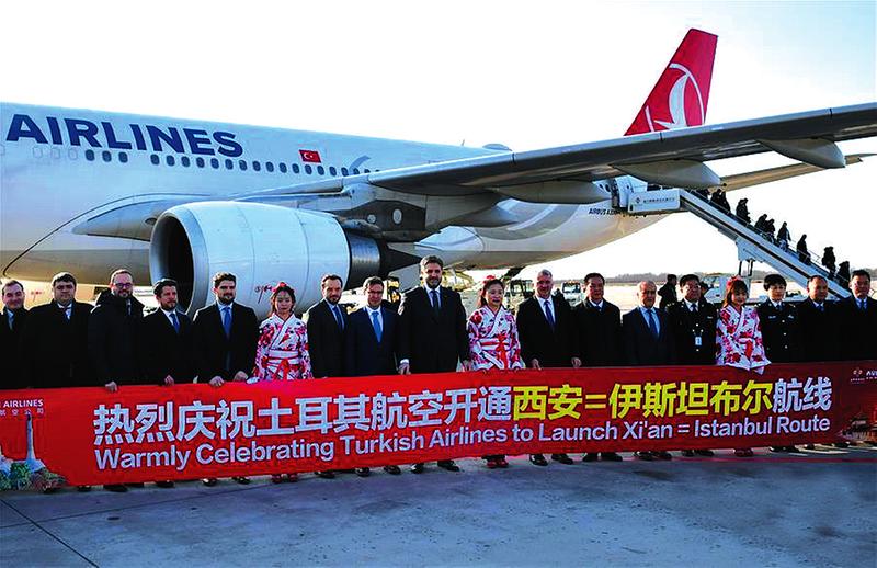 日前,西安—布达佩斯、西安—伊斯坦布尔、西安—努尔苏丹三条国际直达航线在西安咸阳国际机场首航。三条国际直达航线打通了西安至东欧、中东、中亚地区的空中通道,将进一步提升西安机场枢纽和集散能力。新华社供图