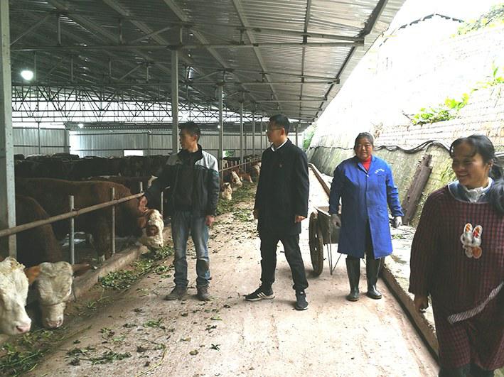 农行四川省乐山分行紧紧围绕“产业扶贫”做文章,坚持以“项目促群众增收”为抓手,加大金融服务和帮扶资金的投入力度,引导群众因地制宜,增强内生动力,多措并举巩固扶贫成果。图为该行客户经理在马边县劳动乡红椿村,调研该行扶持创办的养牛场,了解良种牛的饲养情况。