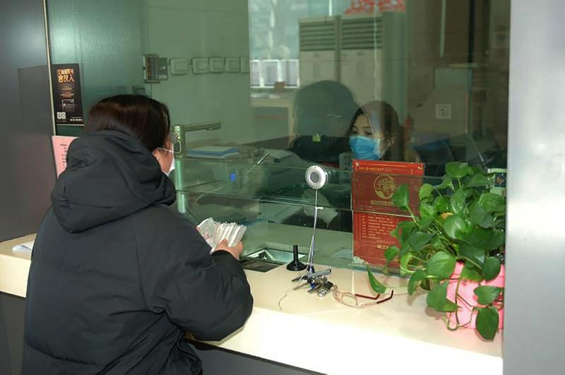 春节期间,工行太原分行面对新型冠状病毒疫情袭击,精心安排,科学防控,党员干部以身作则,靠前指挥,全辖市区和郊县的迎泽、湖滨、建设路等22个主要网点,一直坚持开门营业,为客户提供安全高效快捷的优质金融服务,受到社会各界的一致好评。图为该行湖滨支行员工为客户快速优质办理现金业务。蒋丛福摄影报道
