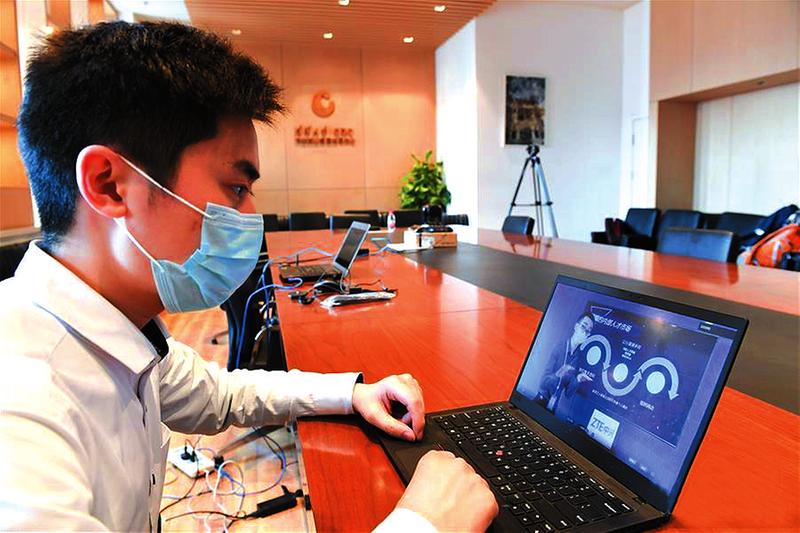 3月16日,清华大学、湖北高校联合在线大型招聘会启动。据介绍,本次联合在线大型招聘会将持续至20日,还专门设立了湖北武汉的地域类招聘专区,主要面向湖北本地及有意愿赴湖北工作的毕业生开展招聘。图为用户通过电脑观看用人单位在线招聘宣讲。新华社供图