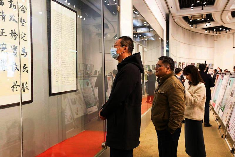 近日,由江苏省扬州市银行业协会、保险行业协会联合承办的“清风‘扬’帆·同‘州’共廉”清廉金融书画摄影展暨廉政警示教育巡回展开展。其中工行扬州分行程瑶、季晓明荣获书法类一等奖、二等奖,另有多位员工获得摄影、书法优秀奖,图为该行纪委书记郭世鹏(左一)观展。