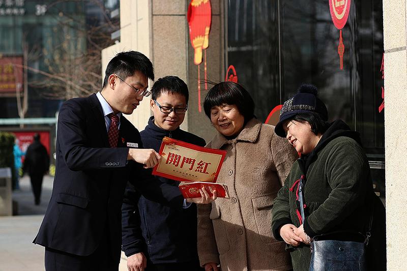 “十三五”期间,工行郑州分行在同业竞争、系统赶超的大潮中屡创佳绩。2021年,他们在新的历史起点上整装再出发,决心争创更加优秀的成绩为党的百年华诞献礼。图为该行自贸区分行员工与客户一起喜迎新年“开门红”。