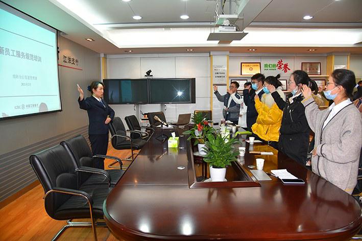 为了帮助新员工努力成长,提高新员工服务规范思想意识和服务规范技能水平,2月25日晚,工行四川省绵阳市江油支行组织部门和网点对近两年入行的新员工20人开展服务规范系统培训。