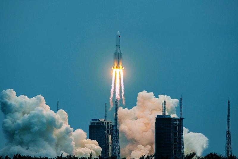 4月29日,搭载着中国空间站“天和”核心舱的长征五号B遥二运载火箭,在我国文昌航天发射场点火升空并成功入轨。这是中国开启“天宫”近地轨道空间站建设的第一次发射任务。明年,“问天”实验舱和“梦天”实验舱将发射。届时,“天和”核心舱及两个实验舱将组成“天宫”空间站,将成国家级太空实验室和太空母港。新华社供图