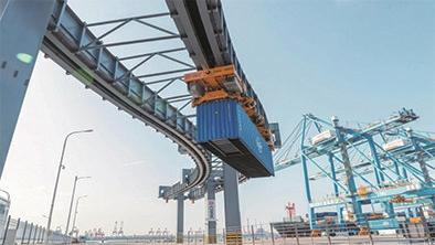 @中国新闻网近日,全球首个智能空中轨道集疏运系统在山东港口青岛港建成投用。该系统做到了集装箱的空中运输,实现了港区交通由单一平面向立体互联的突破升级。与传统集装箱运输模式相比,每自然箱可降低能耗50%以上。