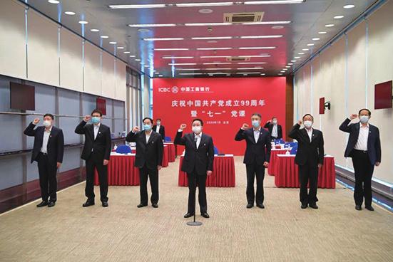 内化于心,外化于形,这些都成为工商银行坚持奋斗,永不停滞的精神动力。工商银行必将以“千淘万漉虽辛苦,吹尽狂沙始到金”的恒心在转型中发展,在变革中图强,在不忘初心中行稳致远,为实现“两个一百年”的奋斗目标和中华民族伟大复兴的中国梦贡献力量。中国工商银行党委书记、董事长陈四清带领党员重温入党誓词陈四清赴深贫地区调研金融扶贫工作