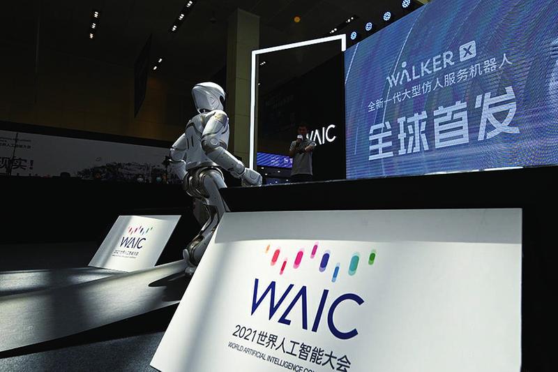 7月7日—10日,以“智联世界众智成城”为主题的2021世界人工智能大会在上海浦东举行。今年的线下参展企业突破300家,其中,首次参展的企业比例超过40%,上海以外地区企业、外国企业占比超过50%。不少创新公司就提前发布了10多款全球首发、中国首发、首秀的新品。图为7月7日在世界人工智能大会体验日拍摄的大型仿人服务机器人。