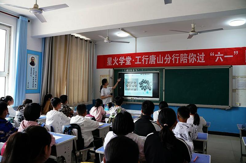 在李大钊的故乡——唐山市乐亭县胡家坨镇大黑坨小学,唐山分行的“星火学堂”开讲。
