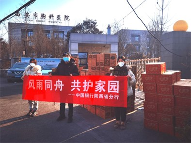 中国银行陕西分行向西安胸科医院捐赠物资。