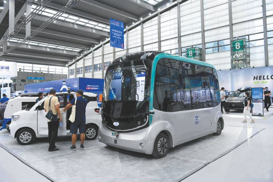 8月16日,以“奋进十载智创未来”为主题的第十届中国电子信息博览会在深圳开幕。本届电博会有1400多家企业带来上万件新产品、新技术及新服务。开幕峰会上,嘉宾全方位、深层次地把脉未来电子信息产业发展趋势。图为观众在博览会上了解自动驾驶汽车。 新华社供图
