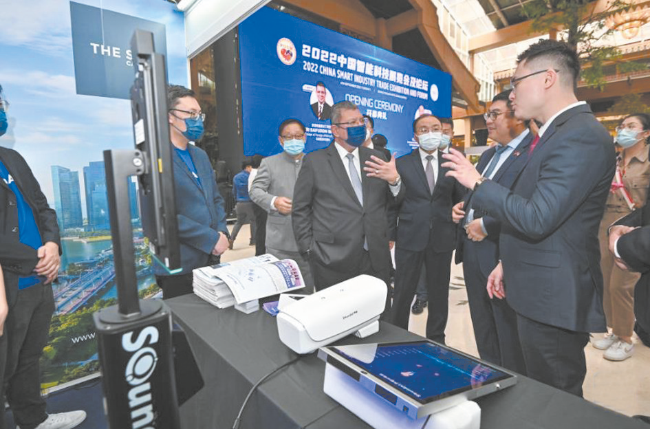9月6日,由马来西亚中国企业家联合会举办的2022中国智能科技展览会及论坛在吉隆坡开幕,旨在促进中马两国企业在智能科技领域的交流合作。图为来宾在2022中国智能科技展览会及论坛上参观。
