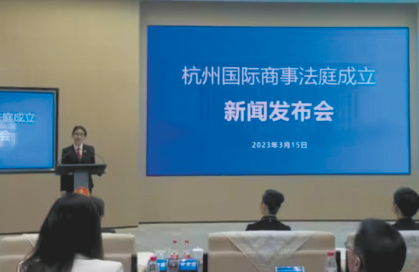 @中国新闻网 杭州国际商事法庭3月15日上午正式挂牌成立,这是全国第九家、浙江首家国际商事法庭。法庭成立后,将以落实国际商事审判精品战略和深化服务保障中心大局为抓手,按照“一法庭、一系统、一基地”的功能定位,为中外当事人提供普惠均等、便捷高效、智能精准的司法服务。
