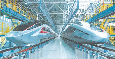 @人民网 单列时速453公里、相对交会时速896公里,这是CR450动车组样车近日在试验期间跑出的最新记录。试验中,CR450动车组从静止加速至时速350公里,仅需4分40秒,比CR400动车组快100秒。据中国铁道科学研究院首席研究员赵红卫介绍,CR450动车组采用的永磁牵引系统比CR400动车组效率提升4%,动力更强。同时,CR450动车组对转向架区域进行了全包覆,裙板变得更低,露出来的轮子更少;动车组的车高降低200毫米,车头延长到15米,并对车端连接进行了优化调整,相较CR400动车组,CR450动车组整车阻力减小22%。