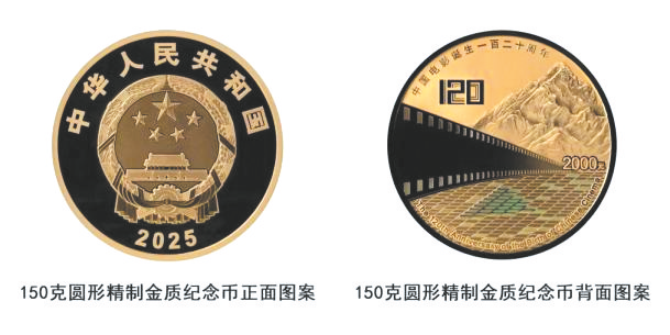 @人民网 中国人民银行定于2025年11月11日发行中国电影诞生120周年金银纪念币一套。该套金银纪念币共3枚,其中金质纪念币2枚,银质纪念币1枚,均为中华人民共和国法定货币。纪念币规格及发行量方面,150克圆形金质纪念币为精制币,含纯金150克,直径60毫米,面额2000元,成色99.9%,最大发行量300枚。3克圆形金质纪念币为精制币,含纯金3克,直径18毫米,面额50元,成色99.9%,最大发行量20000枚。30克圆形银质纪念币为精制币,含纯银30克,直径40毫米,面额10元,成色99.9%,最大发行量30000枚。该套金银纪念币由中国金币集团有限公司总经销。