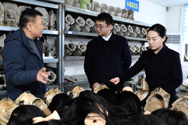 许昌是全球知名的假发产业基地,形成了覆盖原料加工、生产制造到出口贸易的完整产业链,拥有千余家发制品企业。图为该行客户经理开展走访调研的场景。