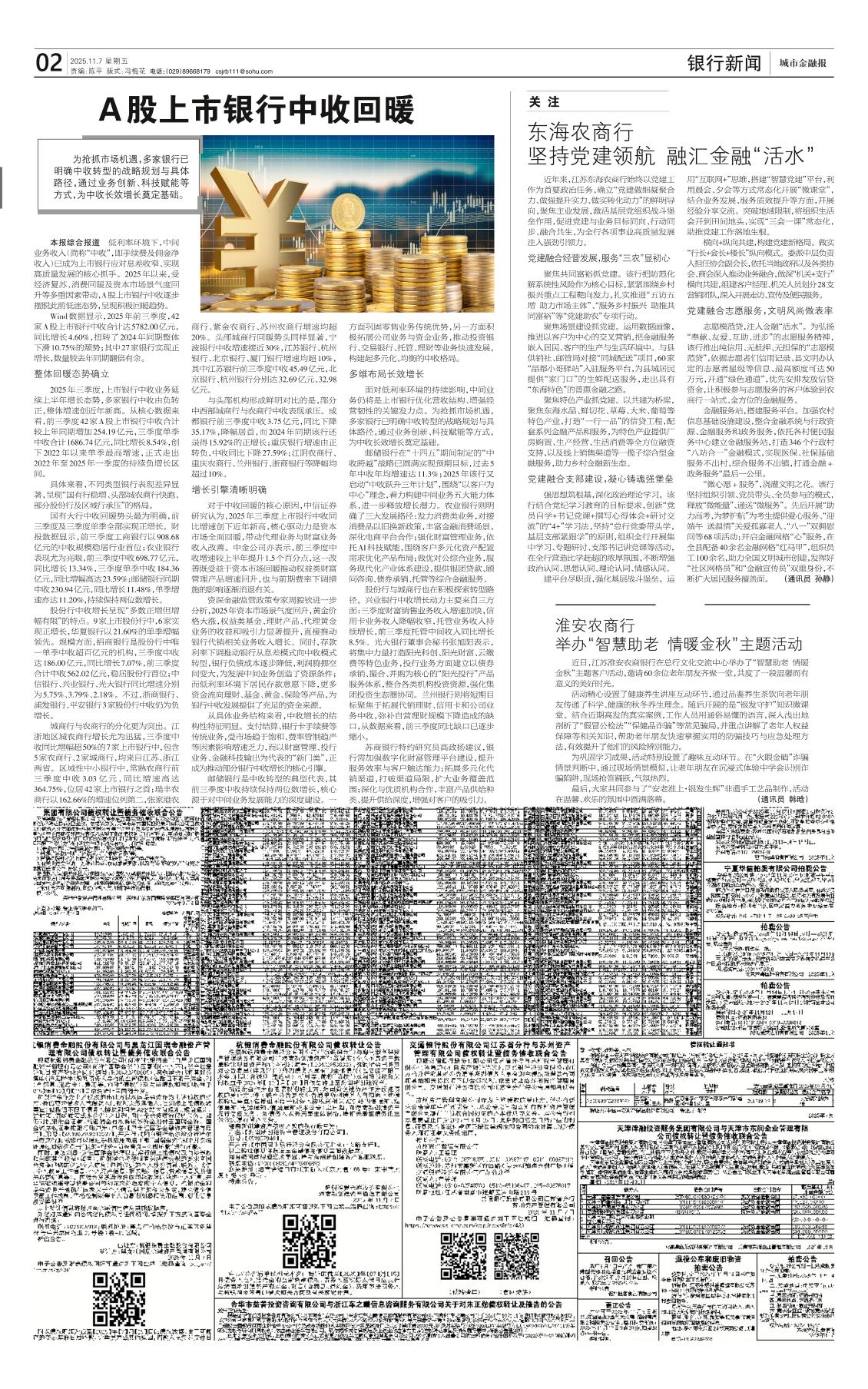 A股上市银行中收回暖