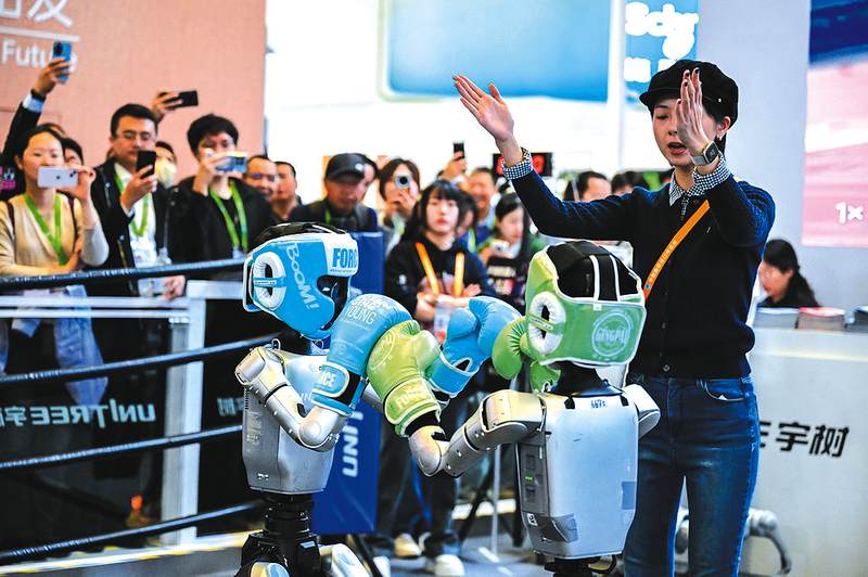 人形机器人格斗表演 亮相进博会