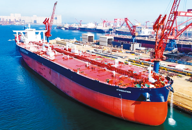 近日,中船北海造船在山东青岛西海岸新区向比利时船东交付了31.9万吨氨预留超大型原油船,该船是5艘系列订单中的首制船,具备未来升级为清洁氨燃料的性能。