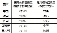 从表1我们可以看到,各个国家的高等教育收益存在着比较大的差异,德国的教育收益最高,在20%左右。其次是意大利和西班牙,大约在11%和12%。同时,我们也可以看出,科技、工程、数学类等专业的教育投资带来的收益显著优于人文学科,这也表明了专业之间教育投资收益的差异化特征。