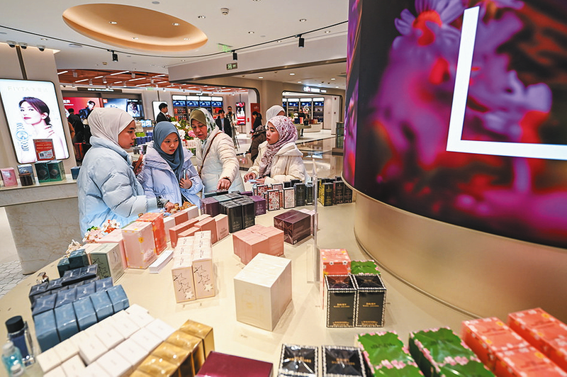近日,我国西北首家市内免税店——西安市内免税店在钟楼商圈正式开业。店内分设免税商品区与有税商品区,免税商品区涵盖美妆、腕表珠宝、进口酒水、箱包、电子产品等品类,有税商品区则引入潮流玩具、国潮美妆、户外运动用品、非遗工艺品、陕西特色文创产品等。据悉,持有效出入境证件且已购买60日(含)内出境机票或国际邮轮船票的旅客,可在西安市内免税店享受免税购物优惠。图为来自马来西亚的游客在选购香水。 新华社供图
