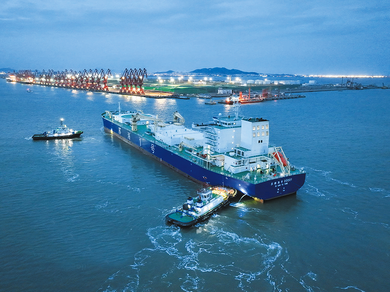 近日,全球首艘集“设计、建造、运营”全链条自主创新于一体的三文鱼养殖工船“苏海1号”产业化项目正式投产,首批40万尾海水三文鱼苗“游”向深蓝,标志着连云港三文鱼养殖正式迈向产业化运营新阶段,为我国深蓝经济高质量发展注入新动能。图为三文鱼养殖工船“苏海1号”靠泊在江苏连云港赣榆港区。 人民网供图